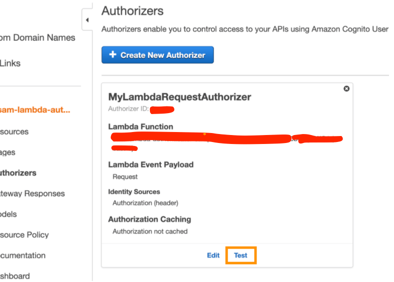 - Test the authorizer from AWS console before doing an E2E testing(refer below screenshot). Testing the API from Resources will not trigger the authenticator, it will always result in success response (I’m not sure if this is an AWS bug)